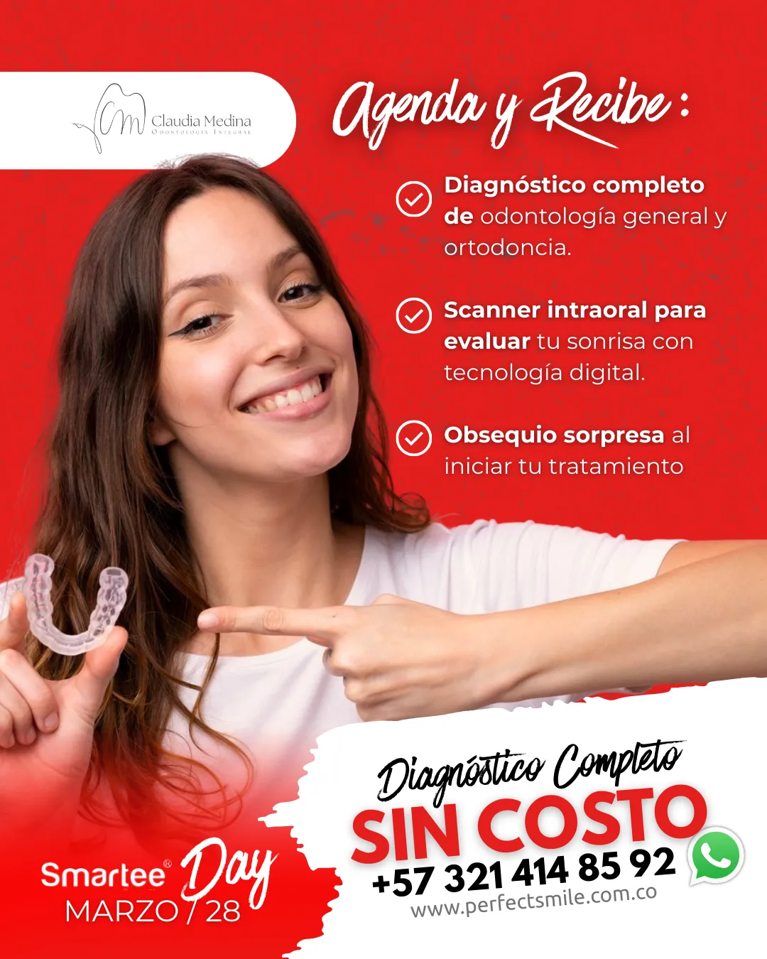Diagnóstico completo $90.000 pero este 28 de marzo no te pierdas esta oportunidad de de realizar tu diagnóstico completo de odontología y ortodoncia sin costo!